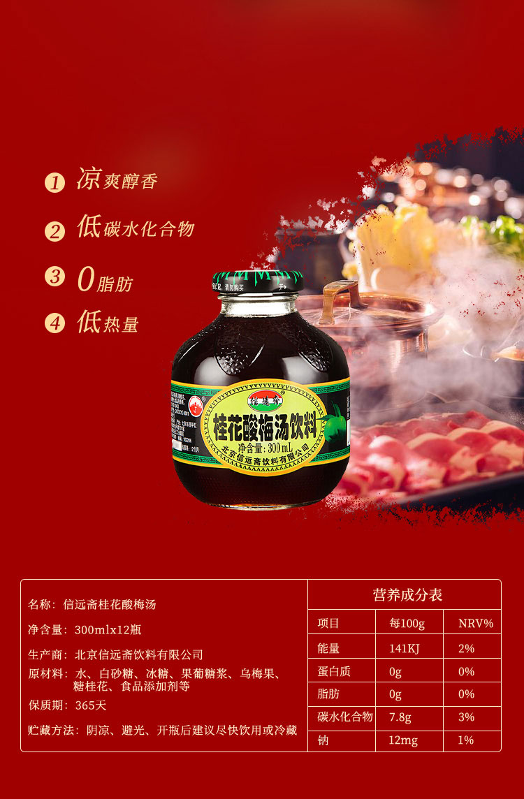 信远斋 桂花酸梅汤饮料 300ml*12瓶 整箱装