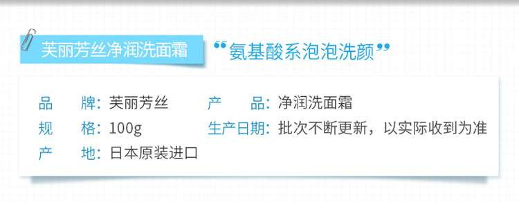 芙丽芳丝freeplus洗面奶女深层清洁泡沫氨基酸温和洁面乳男专柜特价 净润洗面霜100g敏感肌适用