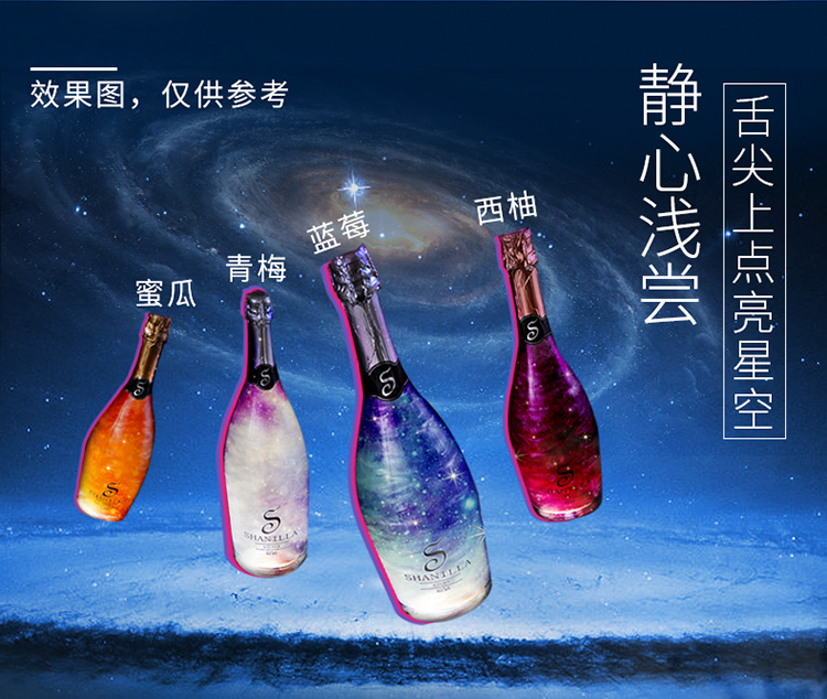 送2香槟杯 尚尼酒庄魔幻云星空酒起泡葡萄酒4支组合整箱 火焰酒女士钟爱的配制甜红酒气泡果酒 4*750ml